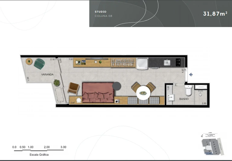 Apartamentos tipo Studio: de 31m² a 41m²
